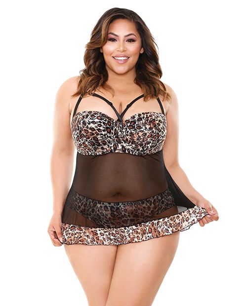 Curve Gretchen Lace & Mesh Chemise w/Molded Cups & G-String Neon Pink